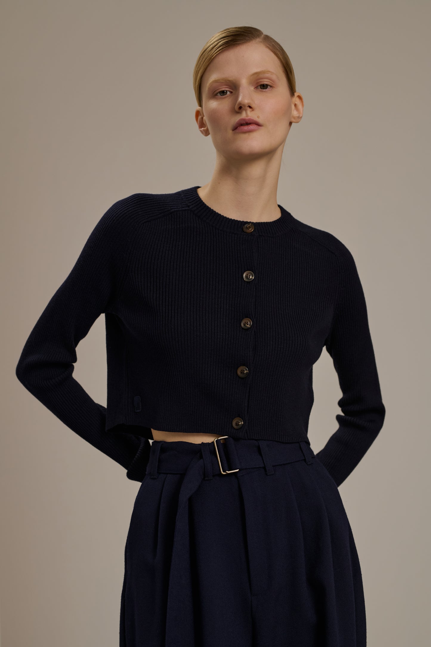 Merino wool rib knit cropped cardigan